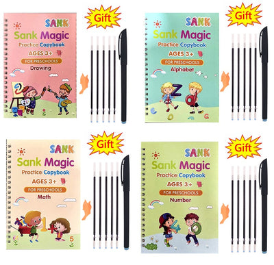 Pack Of 4 Pcs With 10 Refill Copybooks Pen Magic Copy Book Free Wiping Children's Kid Writing Sticker Practice Copybook For Calligraphy