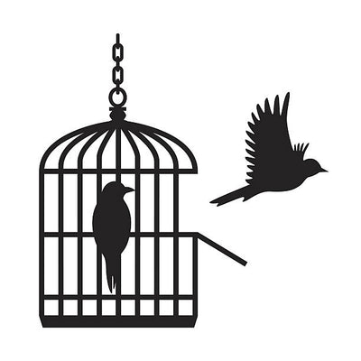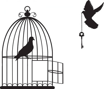 Wooden Bird Cage Open With Doves Flying With a Key Wall Stickers