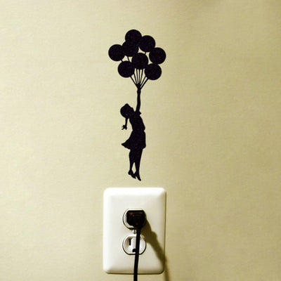 Wooden Flying Balloon Girl Wall Stickers