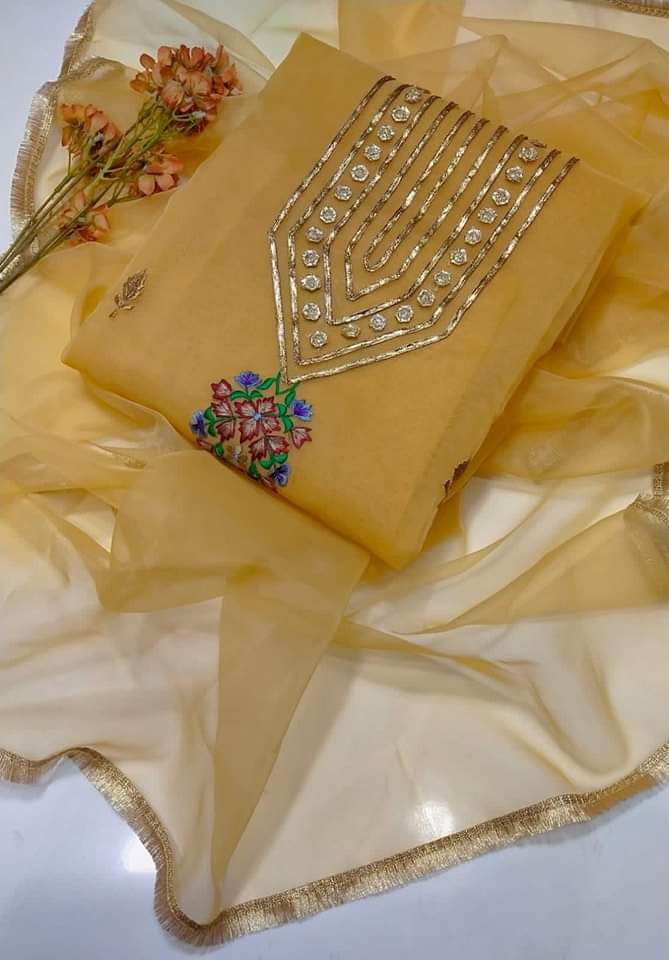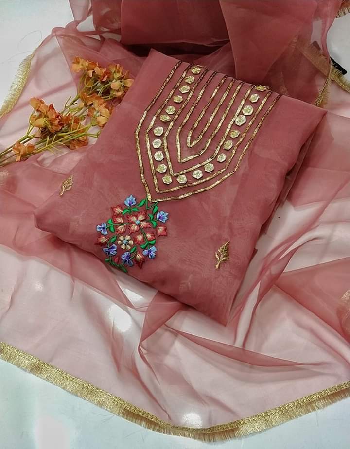 2 pice suit organza Shirt organza gotta and karhai work Dupata orgazna with kiran less 2.5 gaz shirt 2.5 gaz dupata
