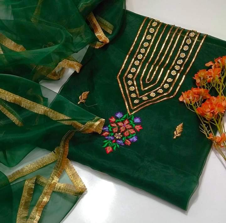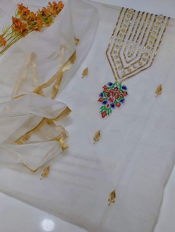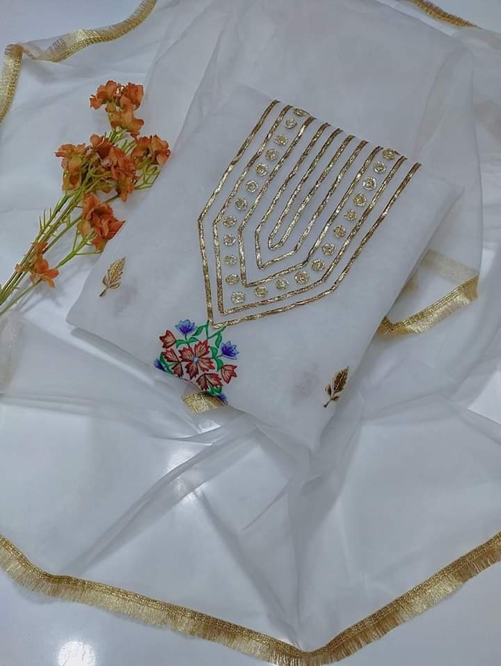 2 pice suit organza Shirt organza gotta and karhai work Dupata orgazna with kiran less