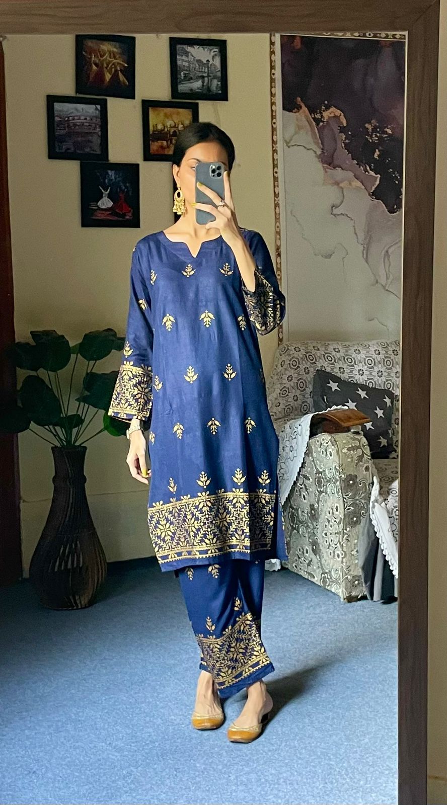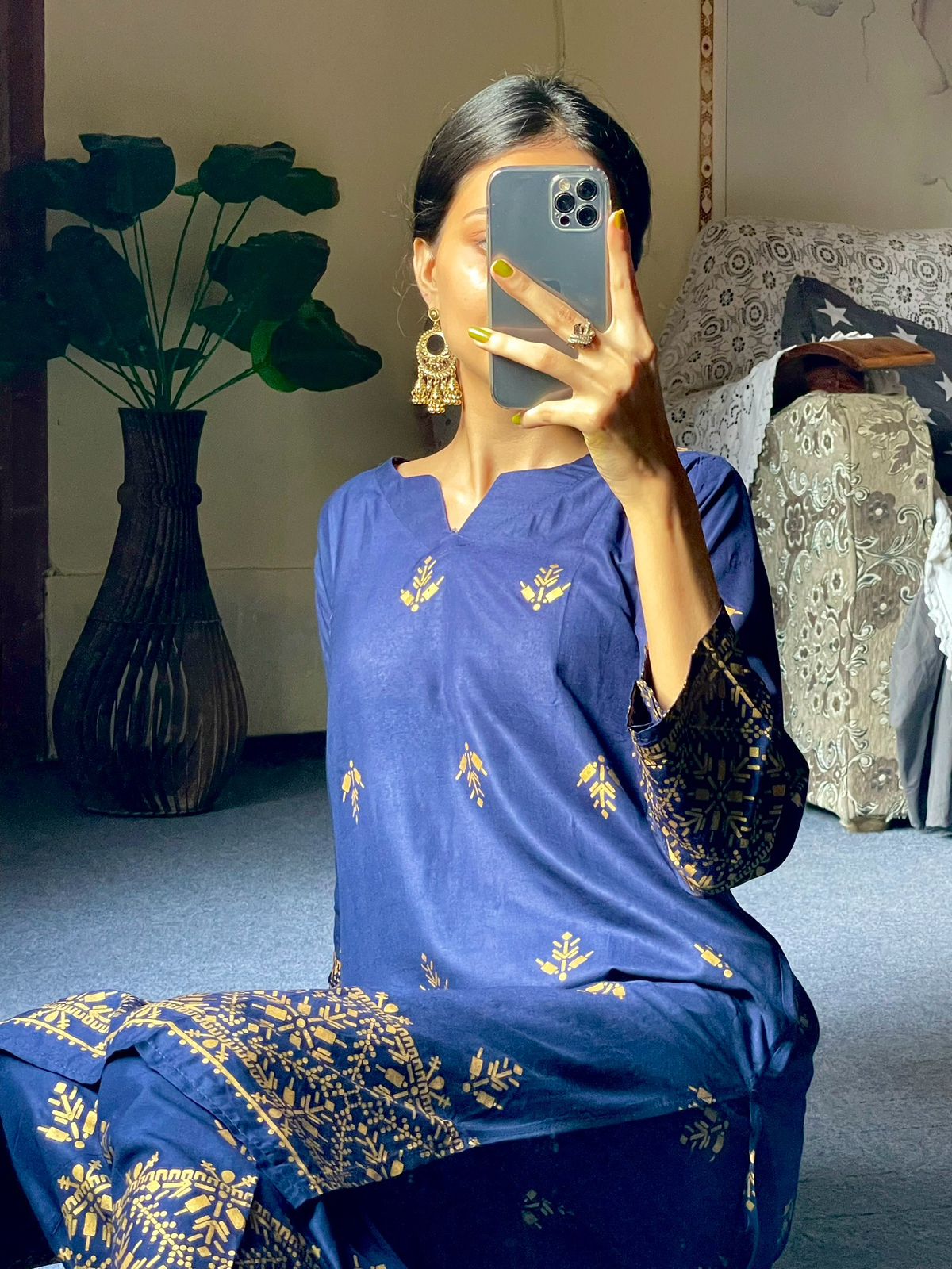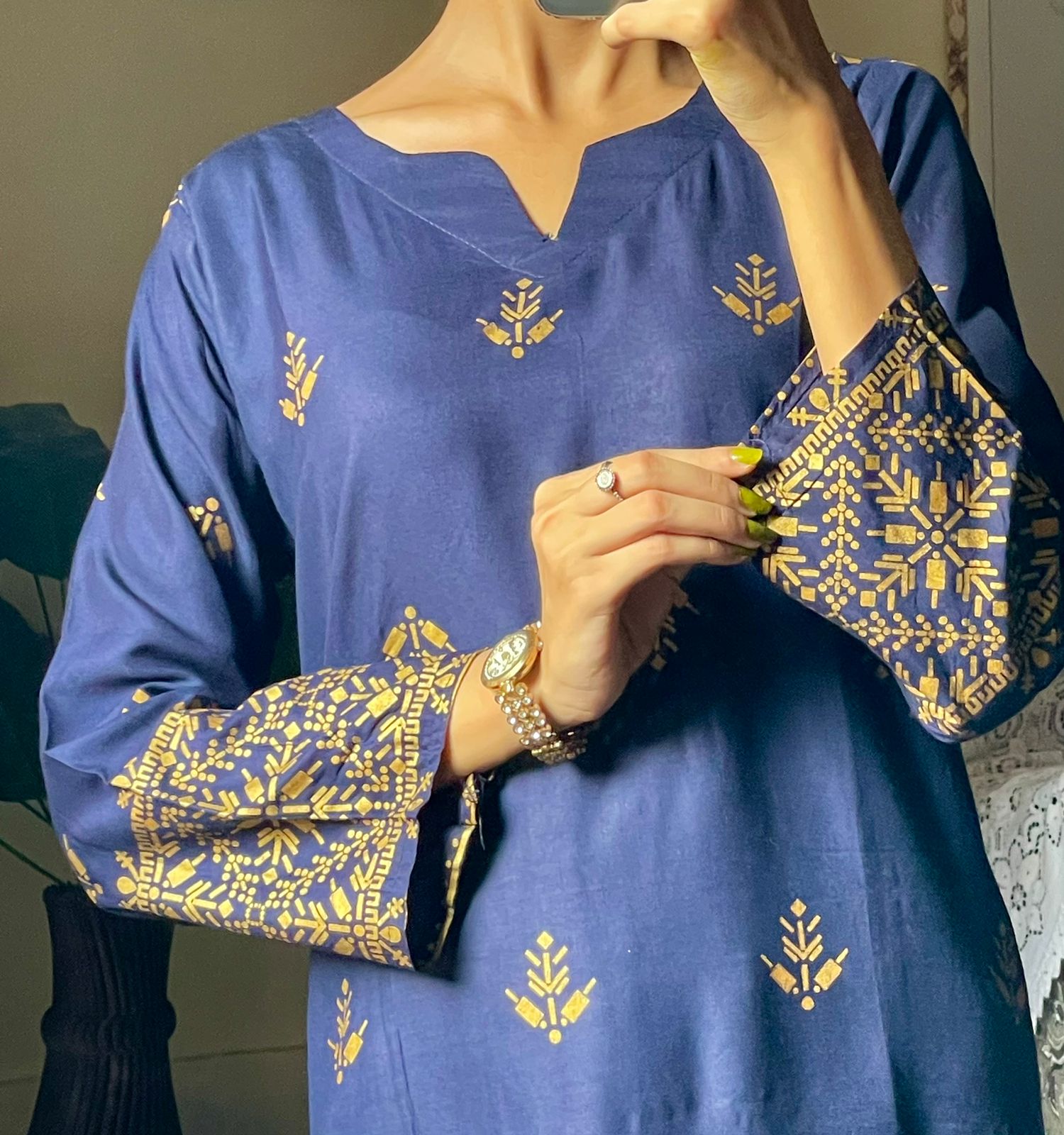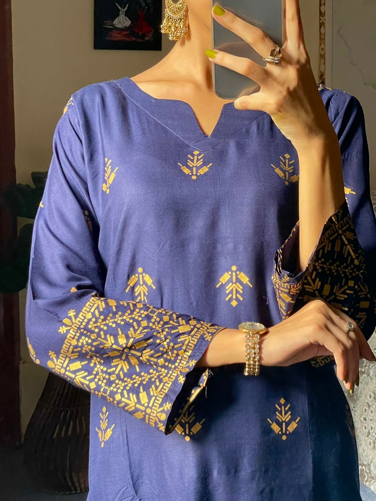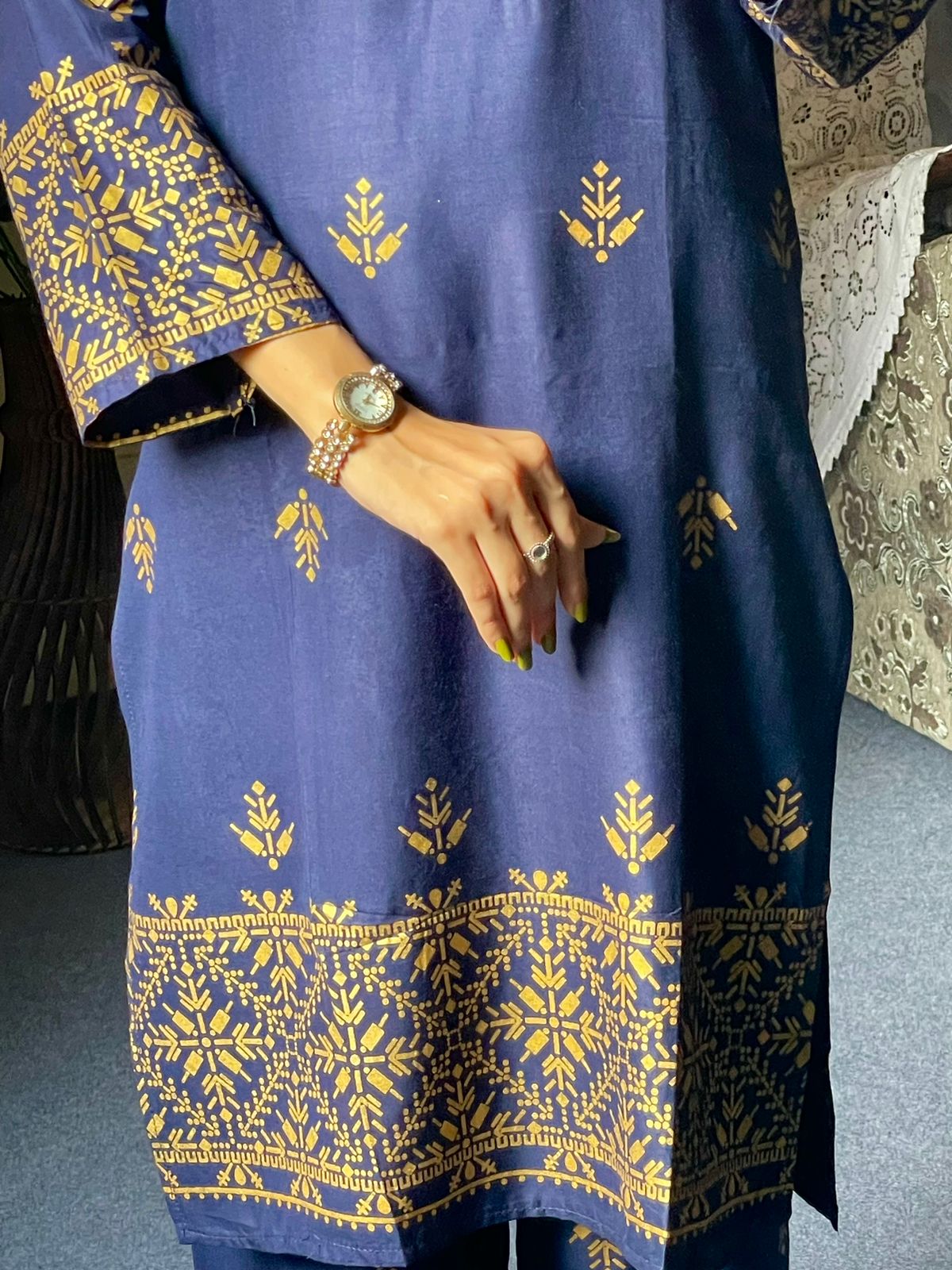 Arrow design Winter linen collection Block printed 2pcs Size: small. Medium , large Small: Chest:19. Length.37 Medium: Chest: 20.5 , Length 37 Large: Chest: 23 , length 37 Fabric: doria Linen block printed