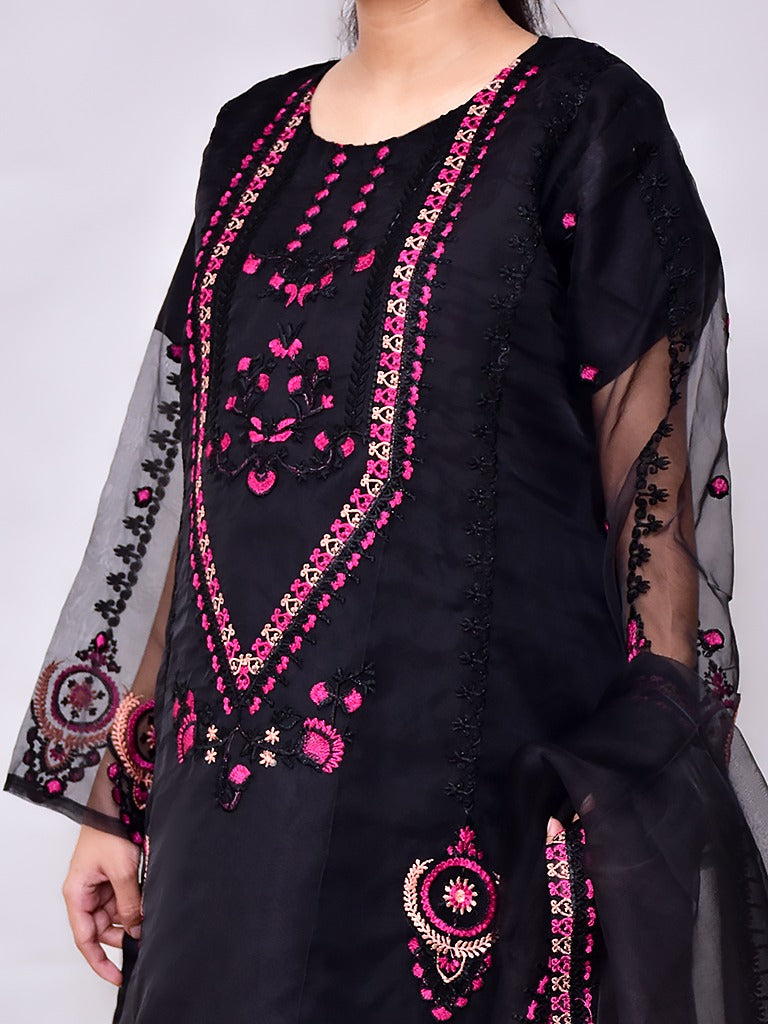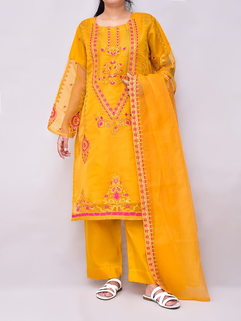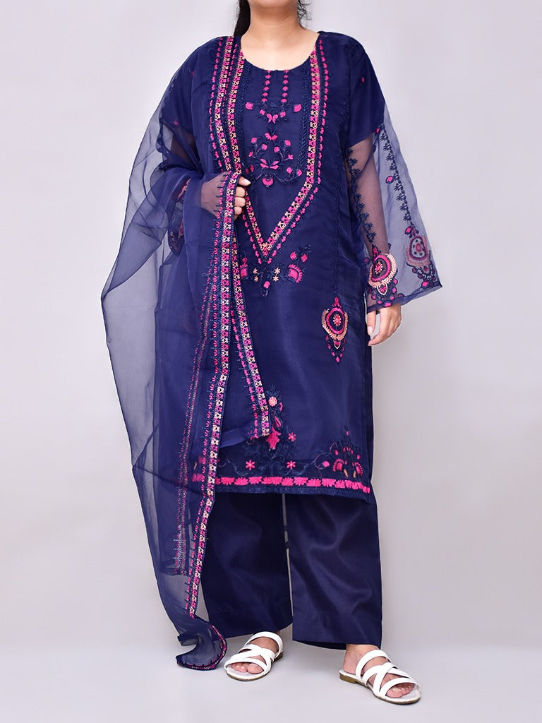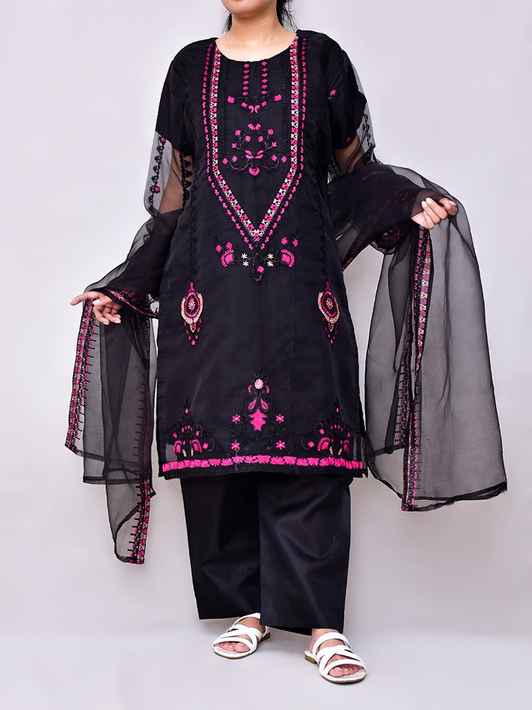 3 Pcs Beautiful Organza Multi Embroidery Suit for women and young girls