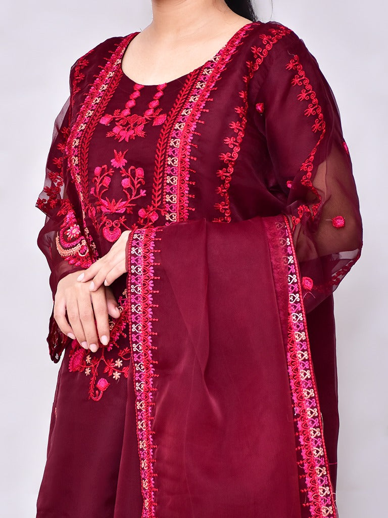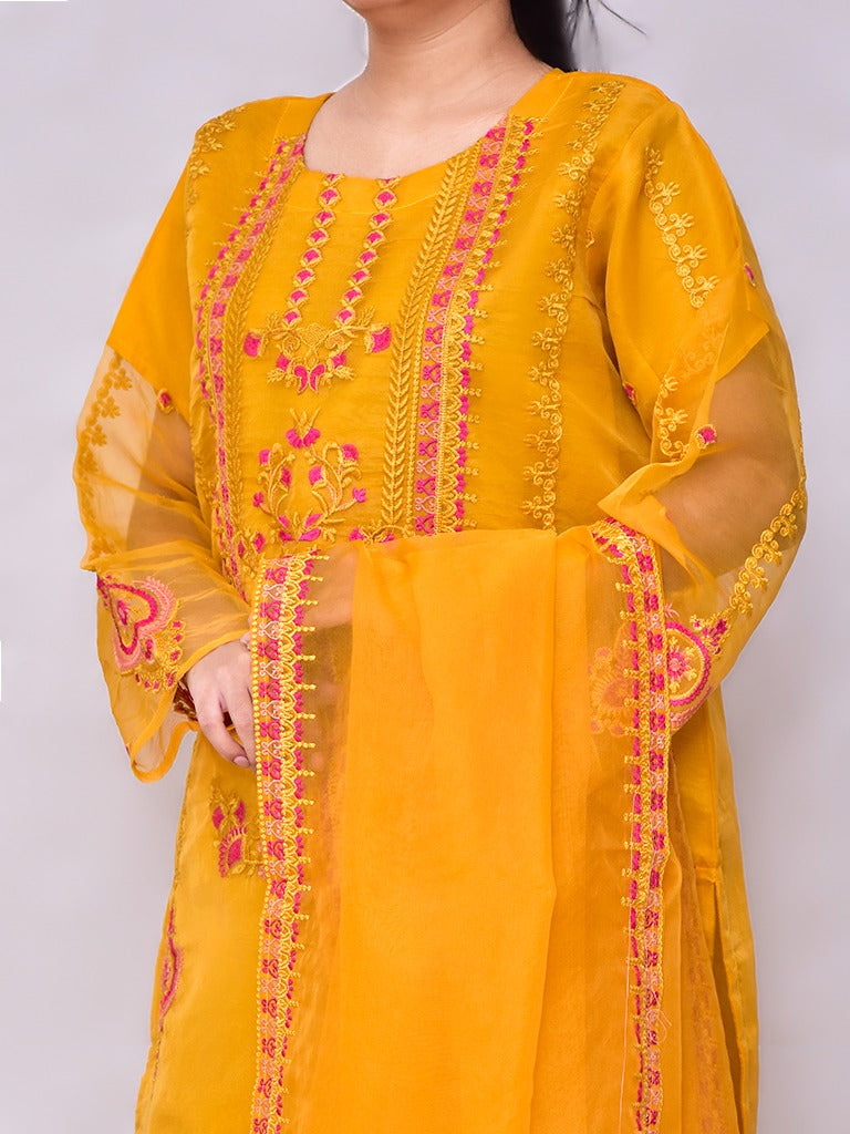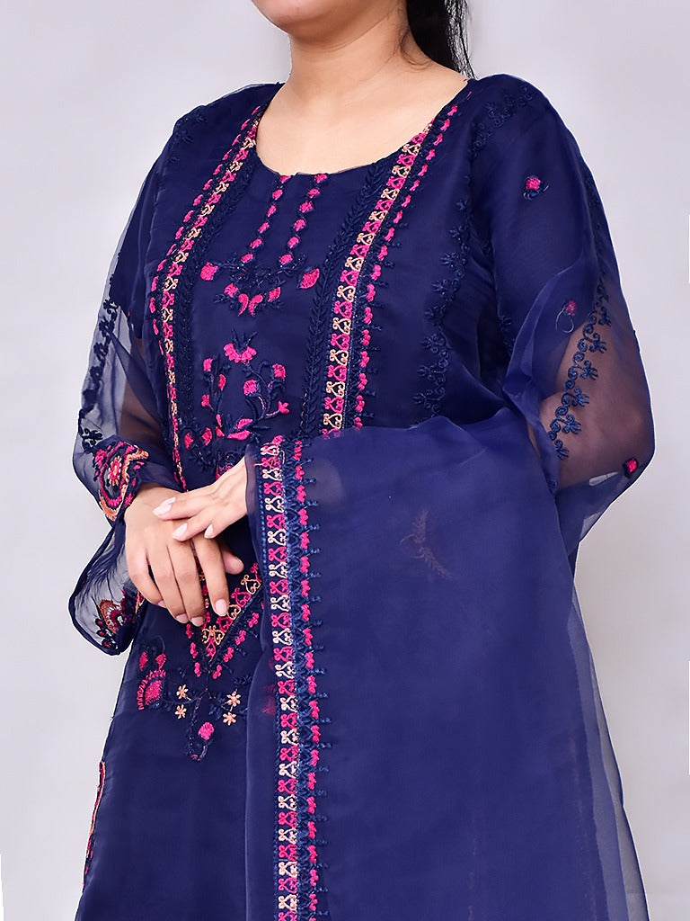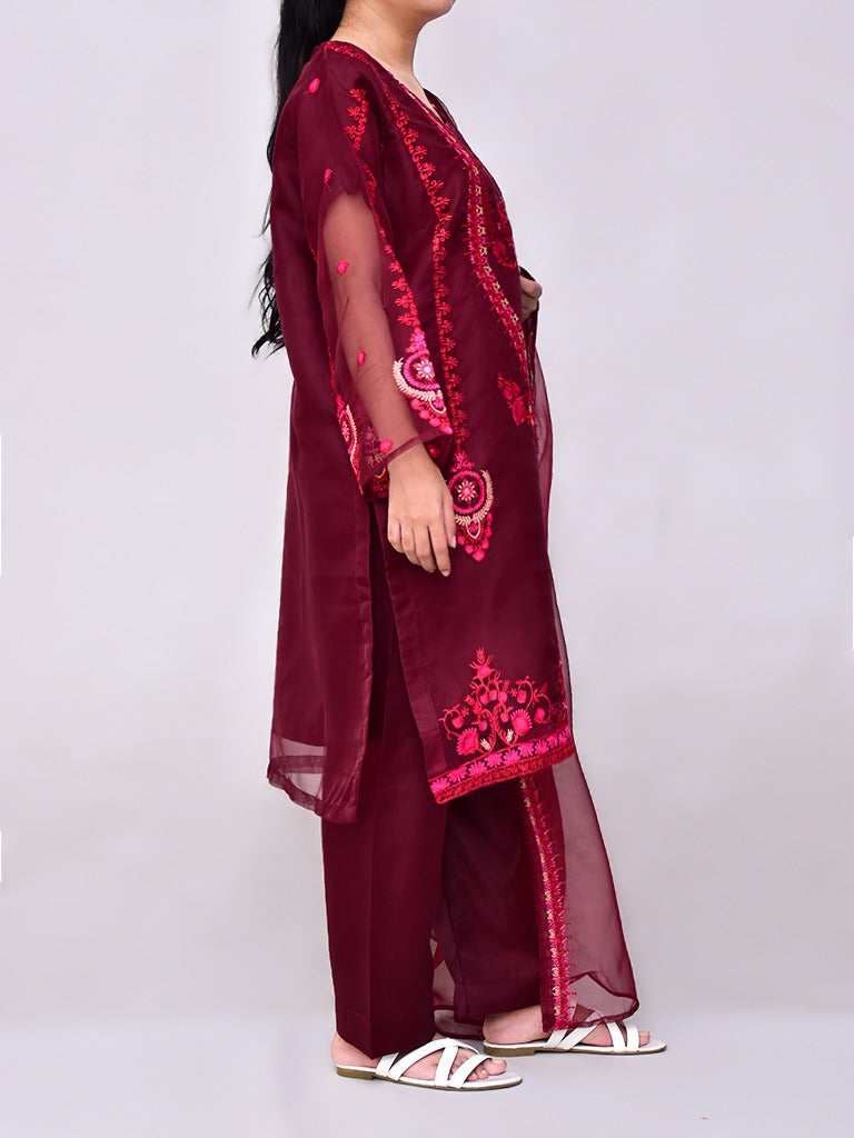 3 Pcs Beautiful Organza Multi Embroidery Suit for women and young girls