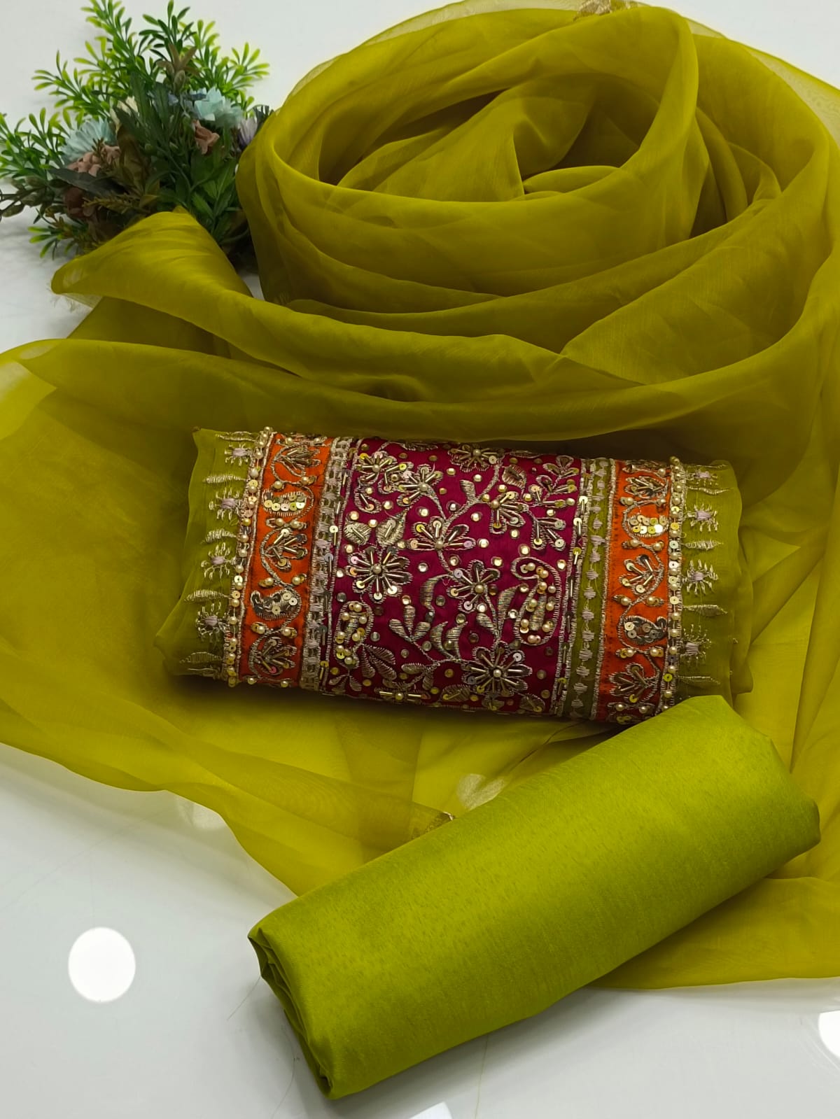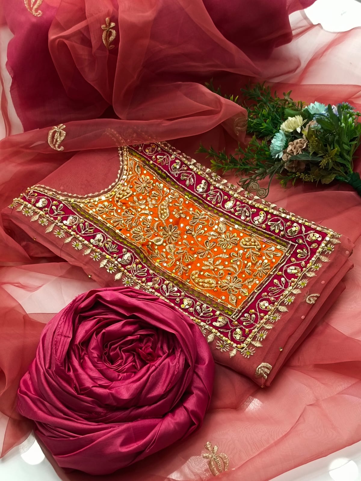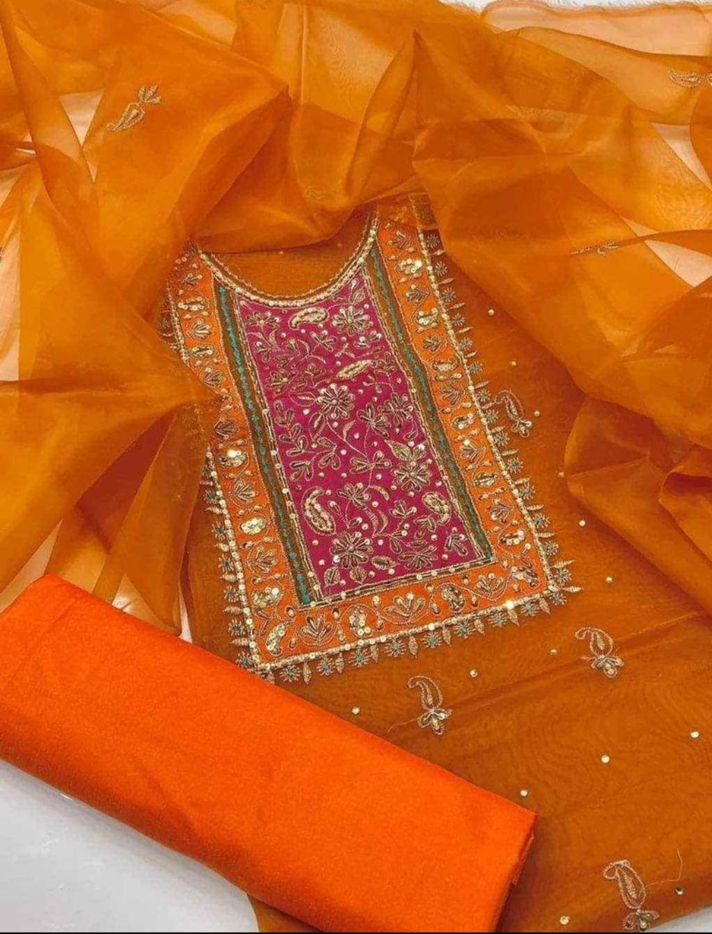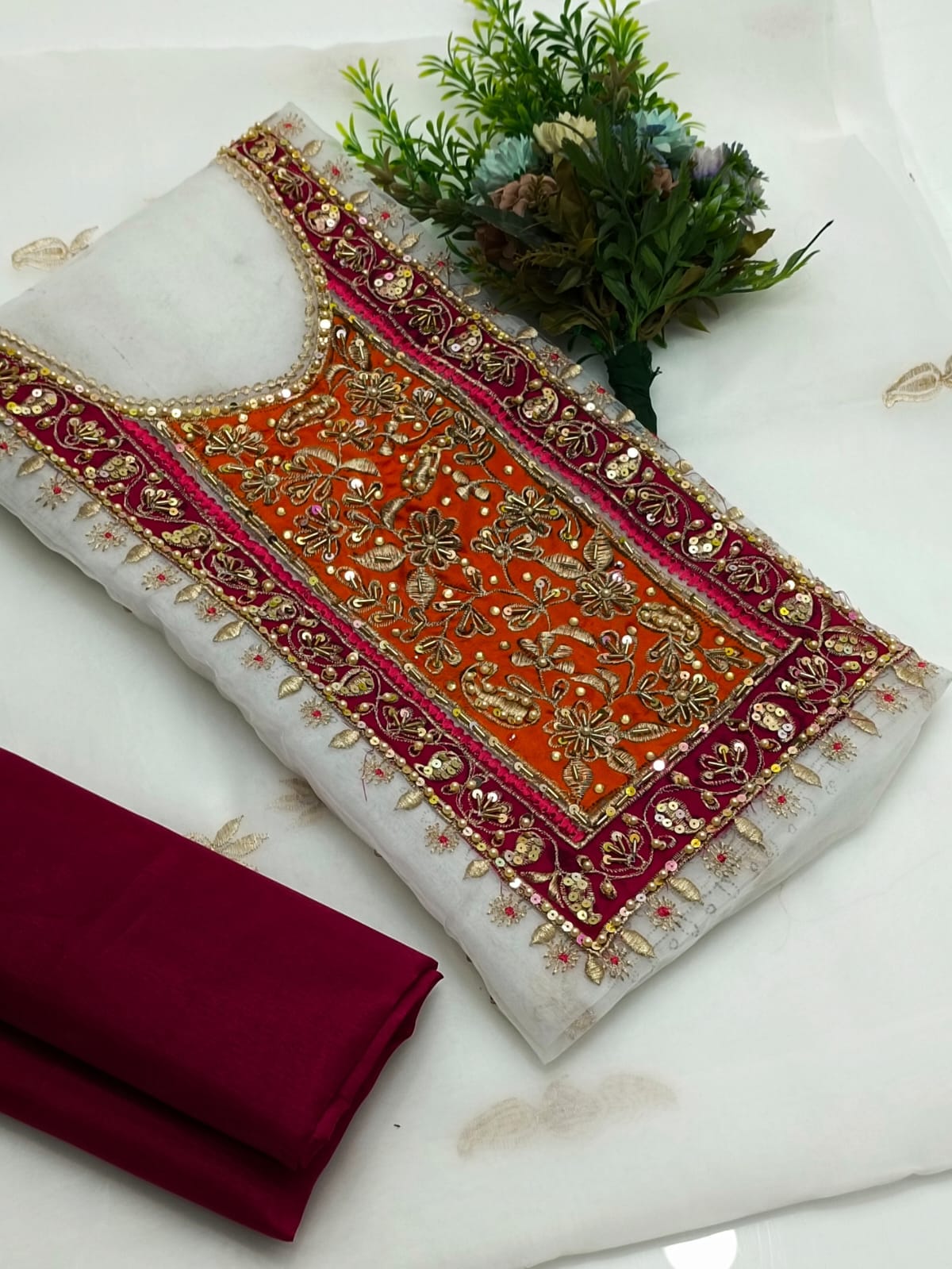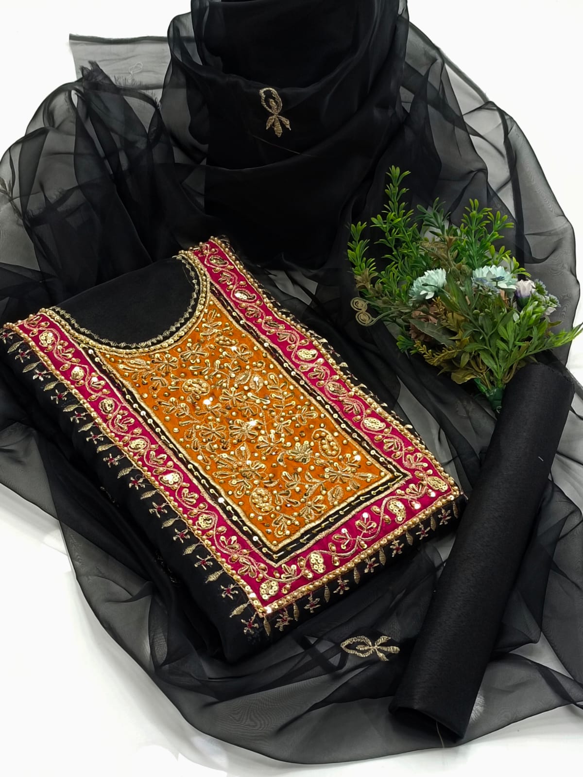 3pc New Handmade Unstitch Applick Party Wear Dress
