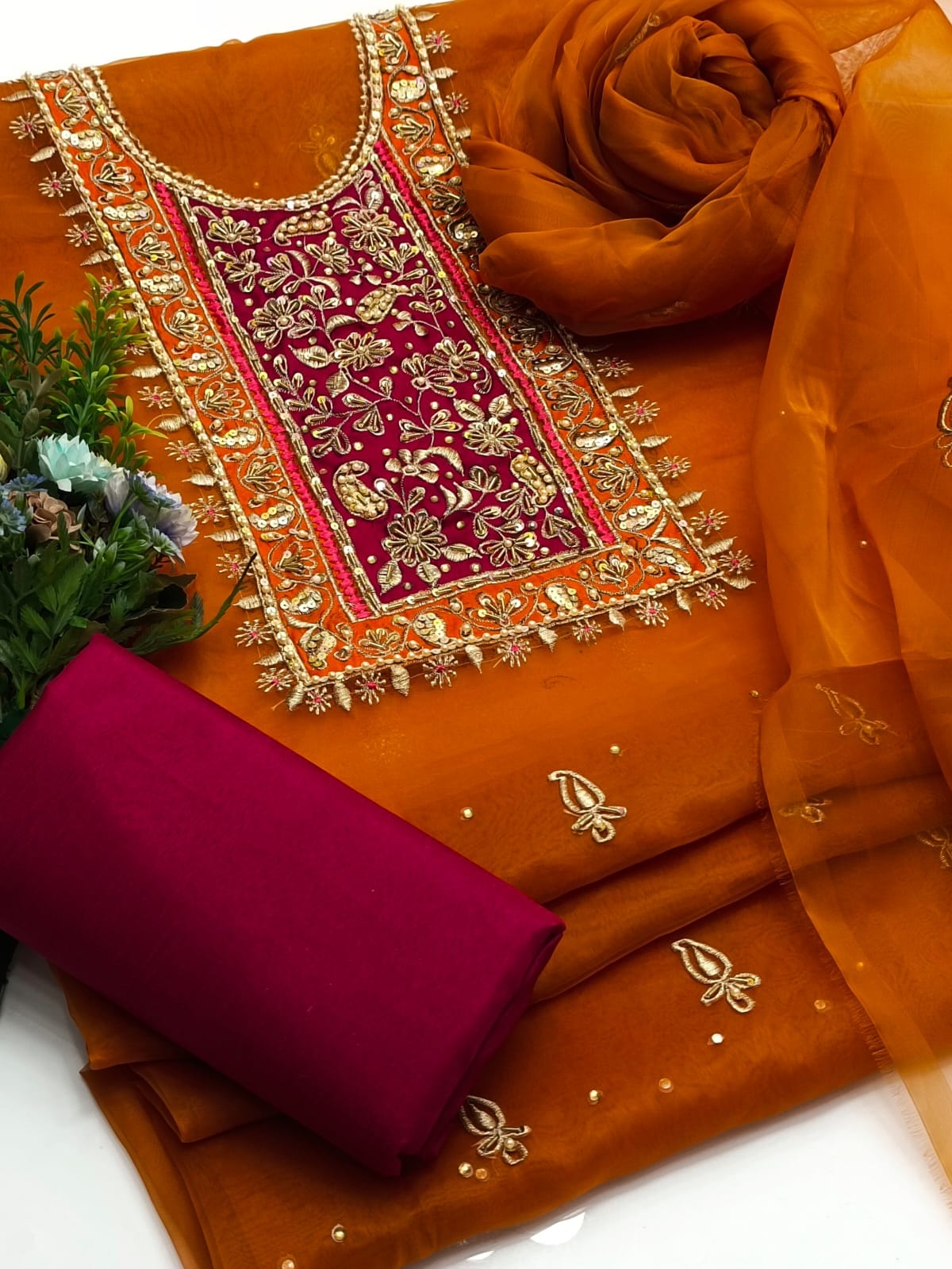 Pure Organza Base Heavy Multi Applick + Sitara Mooti & HANDMADE Work Shirt