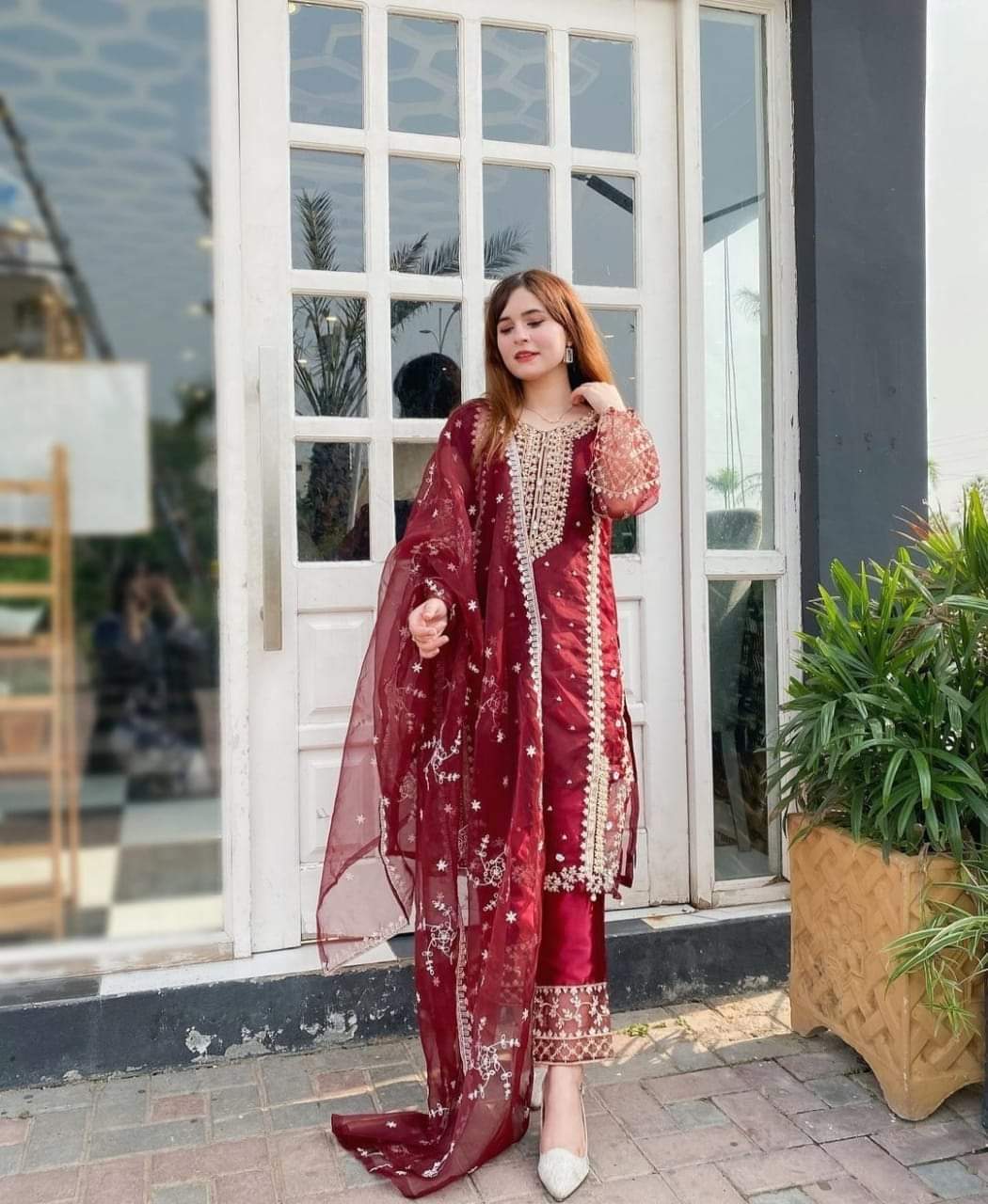 3pcs Tahzeeb Organza Kattan Silk Suit